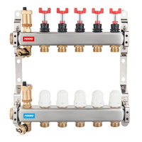 Rozdzielacz 5-drogowy (do systemów c.o. i c.w.u.) z zaworami odcinającymi obwody, stal nierdzewna