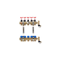 Rozdzielacz do ogrzewania podłogowego QIK PC BASIC II 5-obieg. mosiądz GW 1'' x GZ 3/4'' + przepływomierz